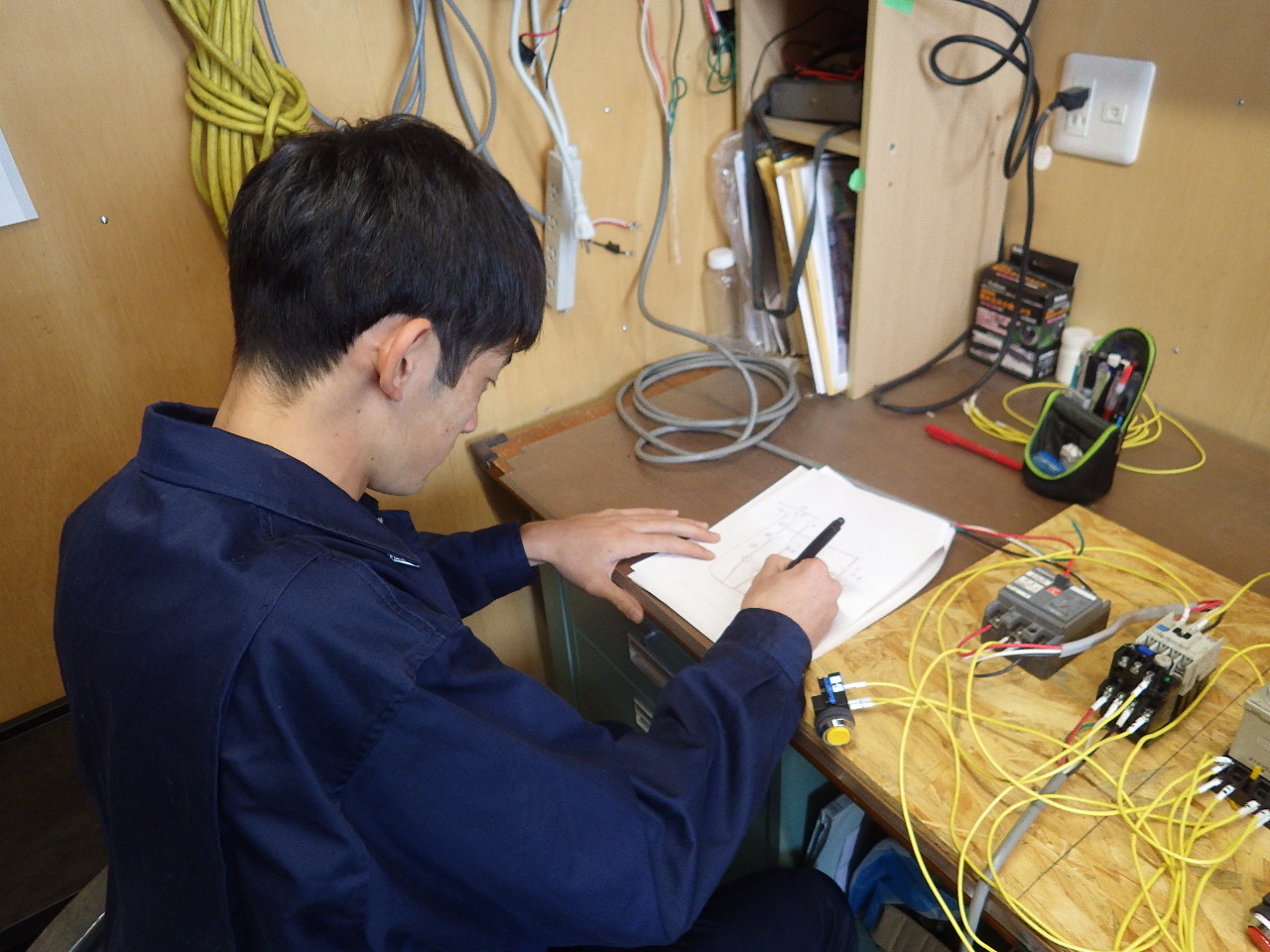 3日目は、生徒が回路図を作成してから結線作業を行い、モーターの正転・逆転、タイマー追加、スピードコントロール制御を実習しました。